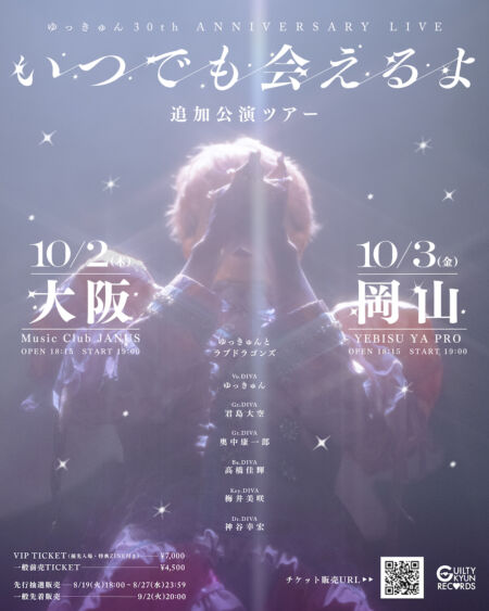 さらに、5月に東京・キネマ倶楽部で開催され、ソールドアウト公演となったゆっきゅんとラブドラゴンズ(バンドセット)の追加ツアー『ゆっきゅん 30th ANNIVERSARY LIVE いつでも会えるよ 追加公演ツアー』の開催も発表された。