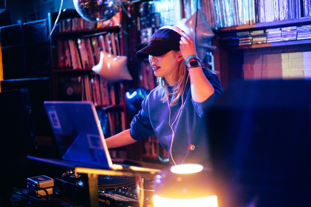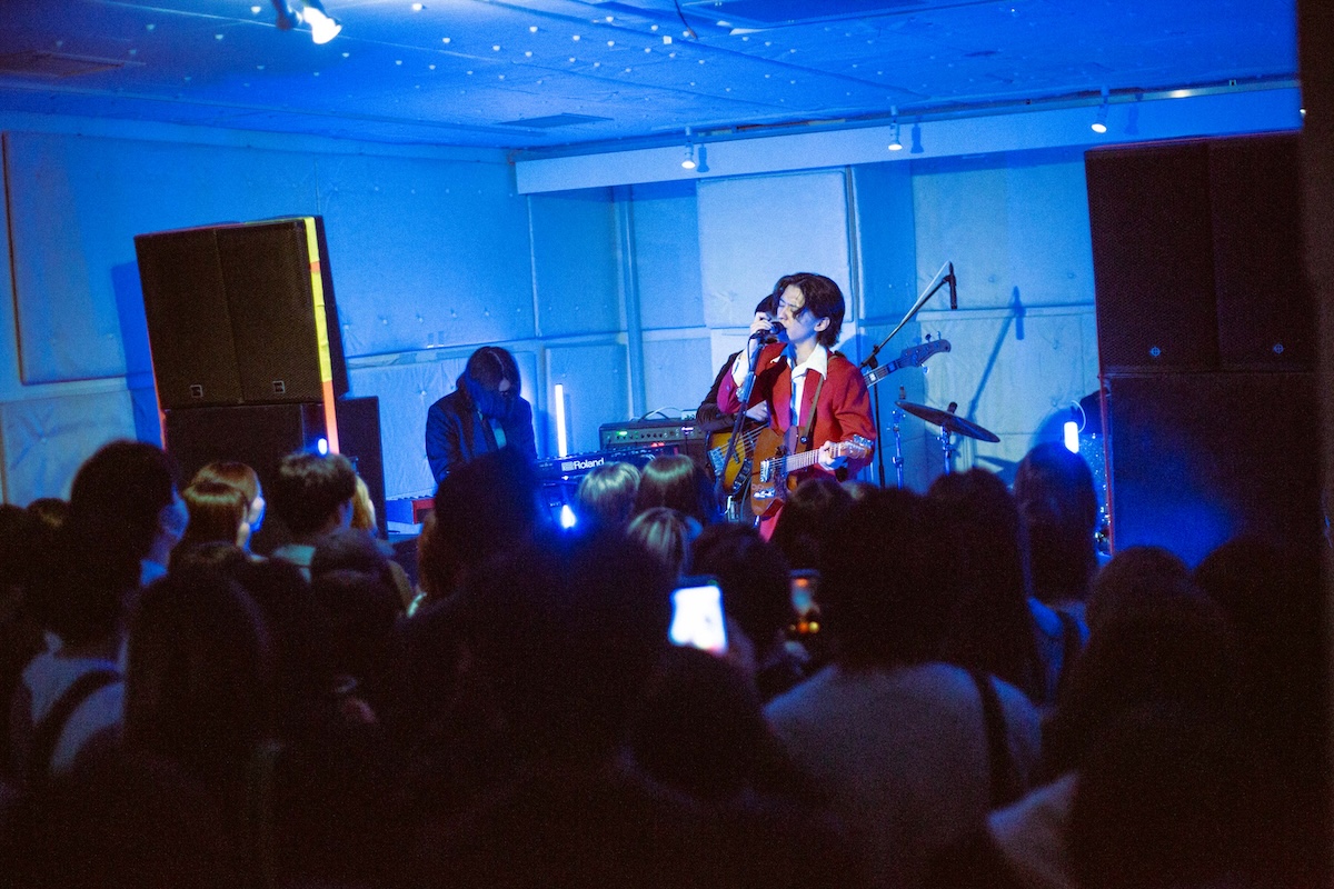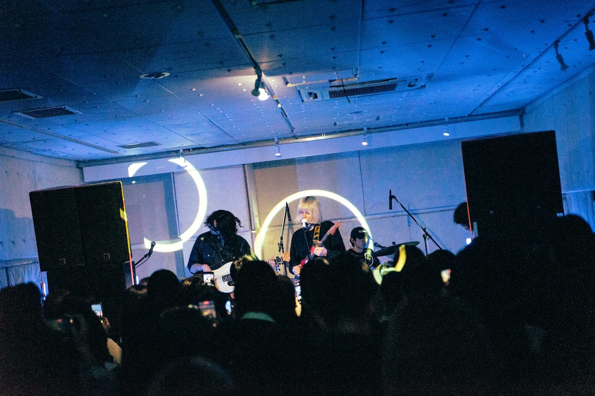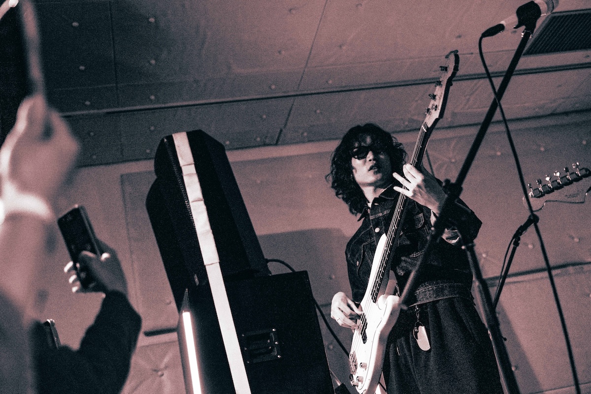 入場無料で開催された今回のローンチパーティ。開場まもなくして到着すると、すでにエントランスには多くのオーディエンスが列をなして並んでいる。会場から漏れ出るのは陽気で景気のいいグッドミュージック。オープンDJは「じめ先生」ことGeloomyのキーボディスト・肝臓だ。4つ打ちを基調としながらも、インディロックからヒップホップ、果てはK-POPからUKガラージまで……Geloomyともリンクするようなしないような、そのバックグラウンドの幅の広さと、しかし一貫した美学を感じさせるDJプレイでフロアを心地よく温めた。