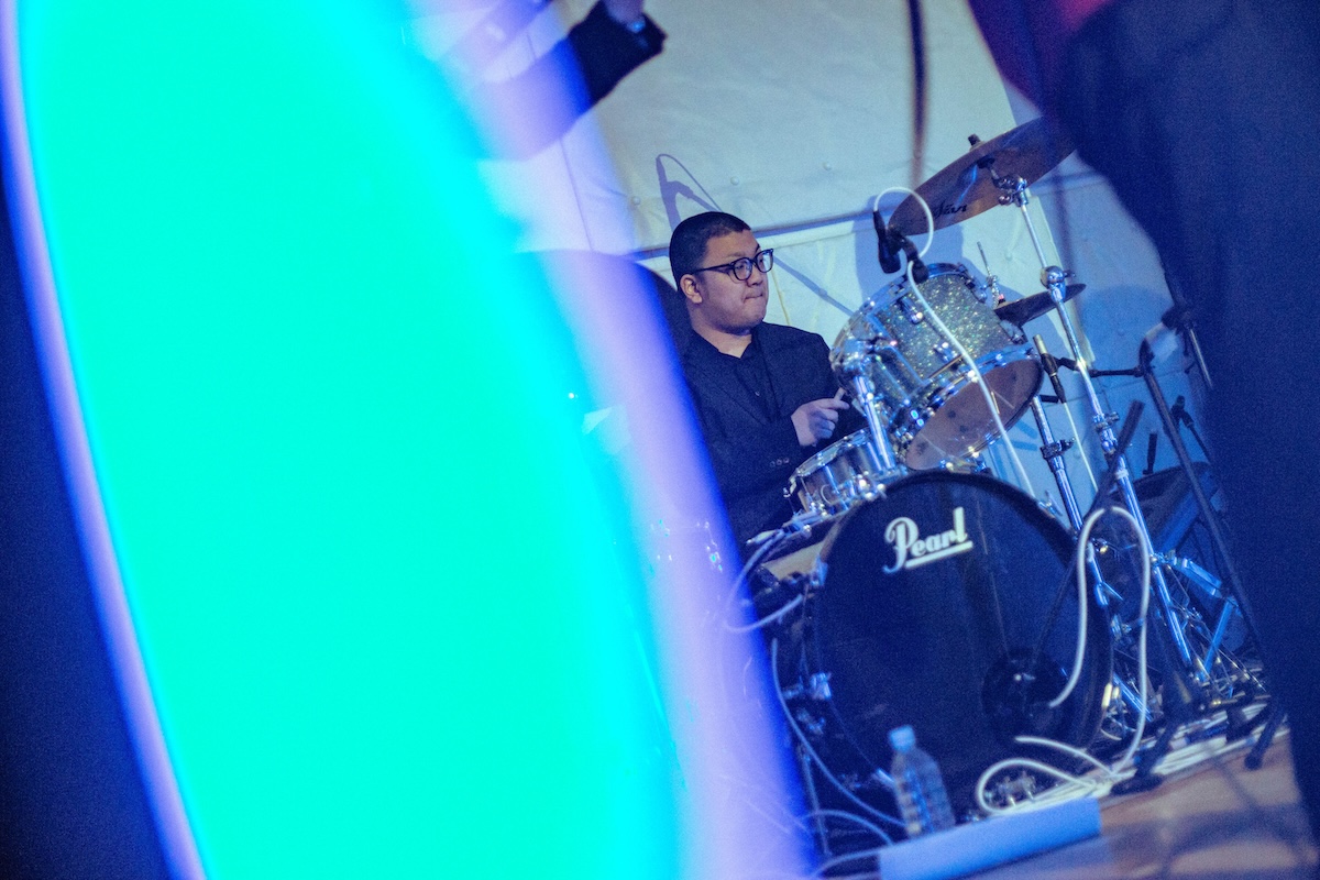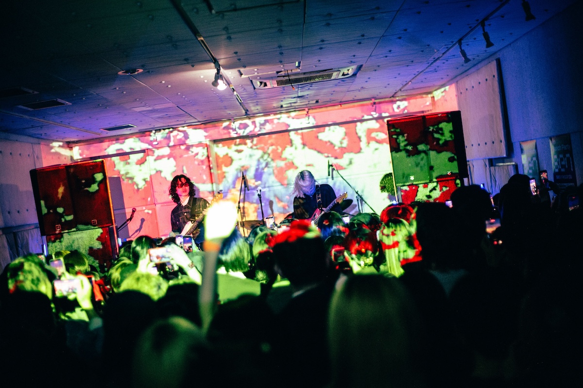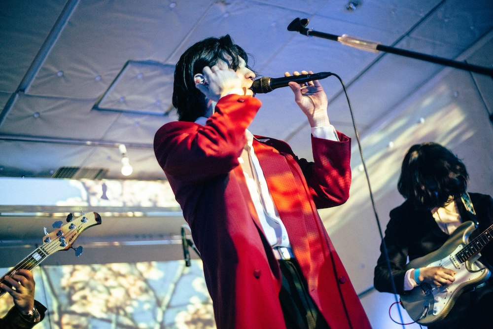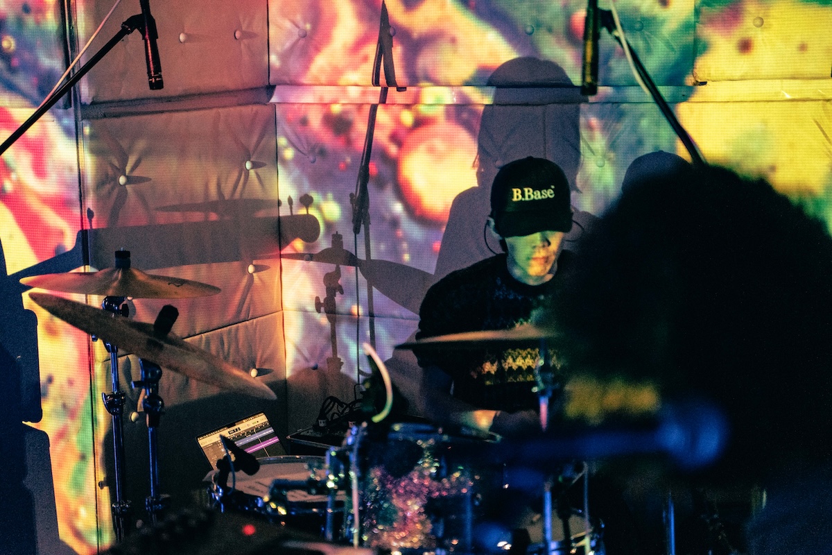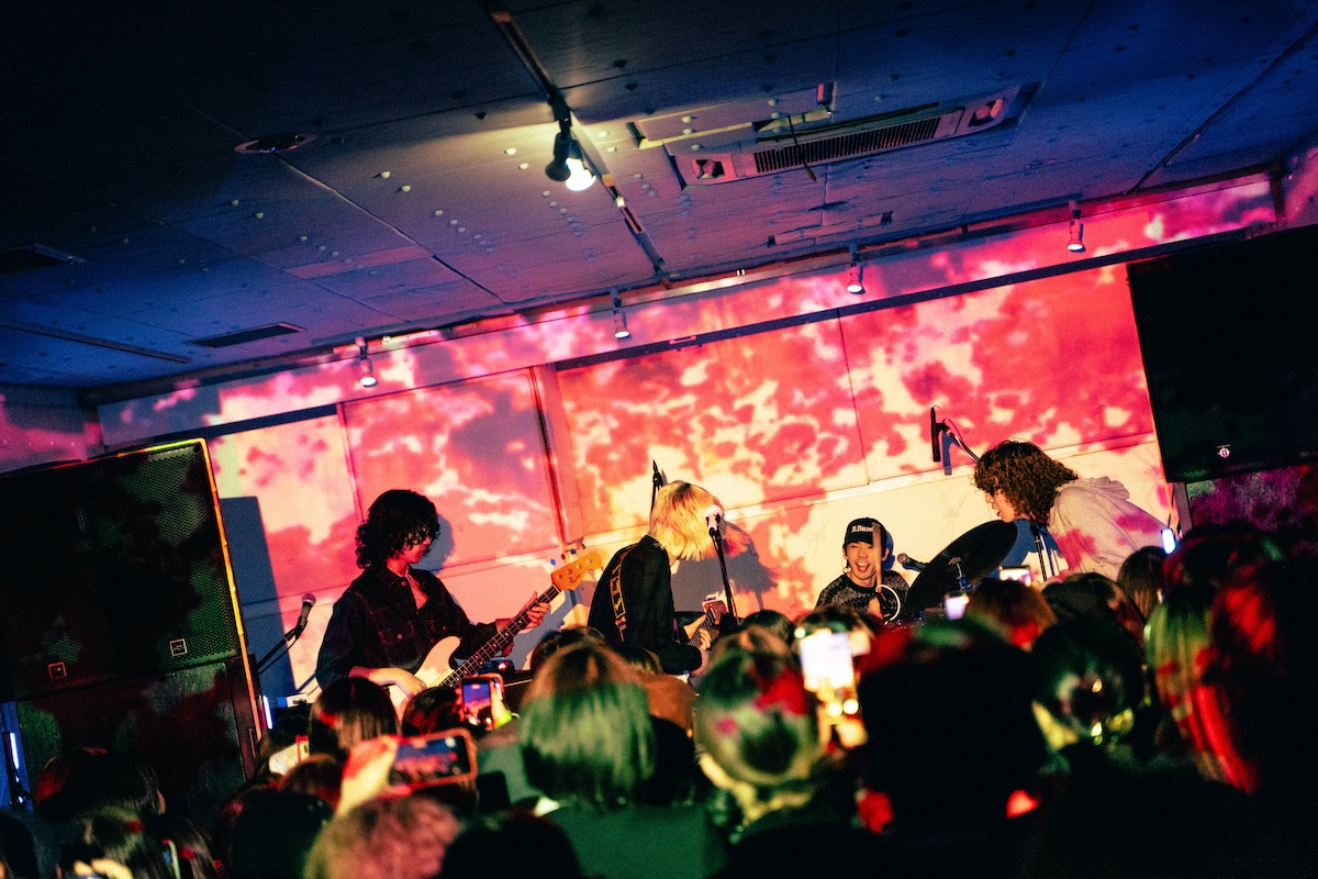 入場無料で開催された今回のローンチパーティ。開場まもなくして到着すると、すでにエントランスには多くのオーディエンスが列をなして並んでいる。会場から漏れ出るのは陽気で景気のいいグッドミュージック。オープンDJは「じめ先生」ことGeloomyのキーボディスト・肝臓だ。4つ打ちを基調としながらも、インディロックからヒップホップ、果てはK-POPからUKガラージまで……Geloomyともリンクするようなしないような、そのバックグラウンドの幅の広さと、しかし一貫した美学を感じさせるDJプレイでフロアを心地よく温めた。
