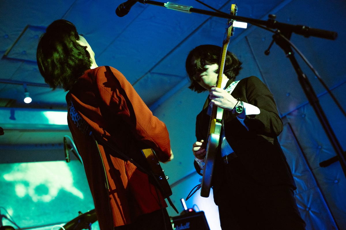 舞台は隣接するKATAへ。肝臓のDJからバトンを渡されたのは、〈sen records〉所属アーティストのニシ ナオキ。1曲目の“プールサイド”から、80年代へとタイムスリップしたかのような、いぶし銀かつロマンチックな世界観が会場を包み込む。歌謡曲を想起させる懐かしくも親しみやすいメロディに、豊かな低音域を備えたボーカルと、それを支えるグルーヴィーなバンドアンサンブル。シティポップマナーに沿った煌びやかなギターカッティングも心地いい。最新曲“枇杷の花”は、ナビゲーションズのメンバーと構築したサウンドを基盤に制作されたというだけあって、息の合った演奏でオーディエンスを魅了した。