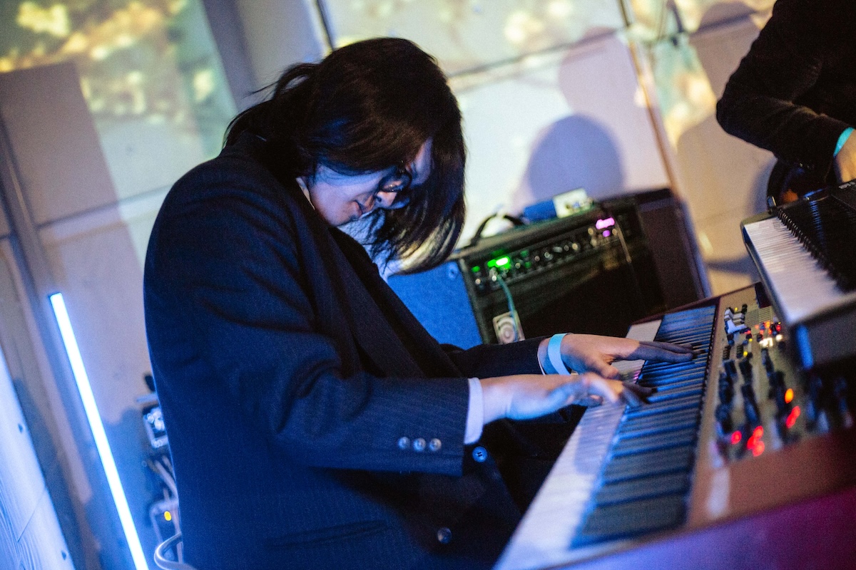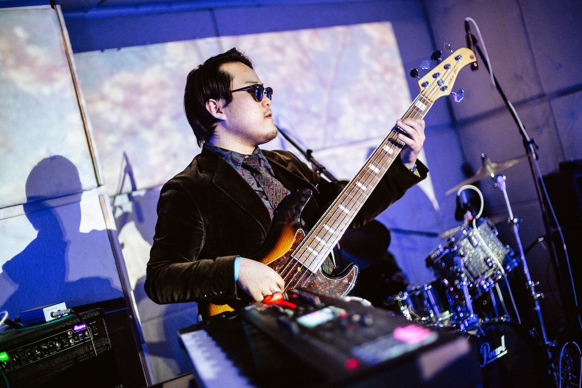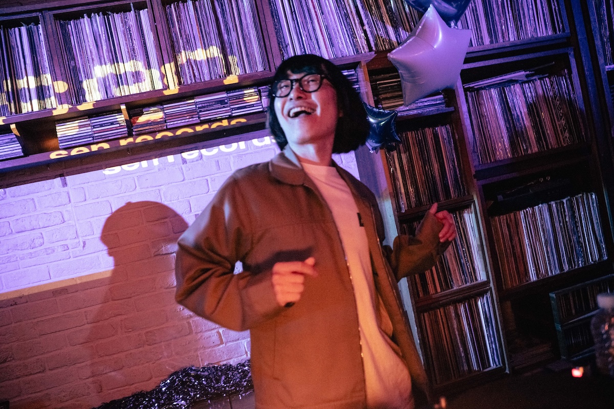 続いて、Time Out Café & Dinerでは〈sen records〉のスタッフ「ますりょうた」がDJブースへ。トリップホップやヒップホップを軸とした選曲で、ライブの余韻を心地よく塗り替えていく。そうこうしているうちに、再びKATAへと人が流れていく。お次はGeloomyのライブ……かと思いきや、ここで〈sen records〉、そしてサンウ氏に縁のあるアーティストたち──aint lindy、Billyrrom、chilldspot、NulbarichのJQ──からのビデオメッセージが上映された。その豪華な顔ぶれに、会場からは驚きと感嘆の声が漏れる。