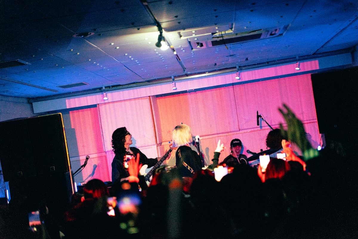 すると、会場に駆けつけていたミュージシャンたちが次々とマイクを握り、贅沢な飛び入り参加の応酬が始まった。やさしいみらいのラッパー・夢句、TiDEのボーカル・井上大悟、Doonaのボーカル・GENKI、そしてGeloomyとも縁深いaint lindyらが自身の楽曲を歌唱(井上は、やさしいみらいの“moonlight”を歌唱)。ブースにはQPLOのSomeyaの姿もあり、まさに「仲間たちの集い」といった様相を呈していく。
