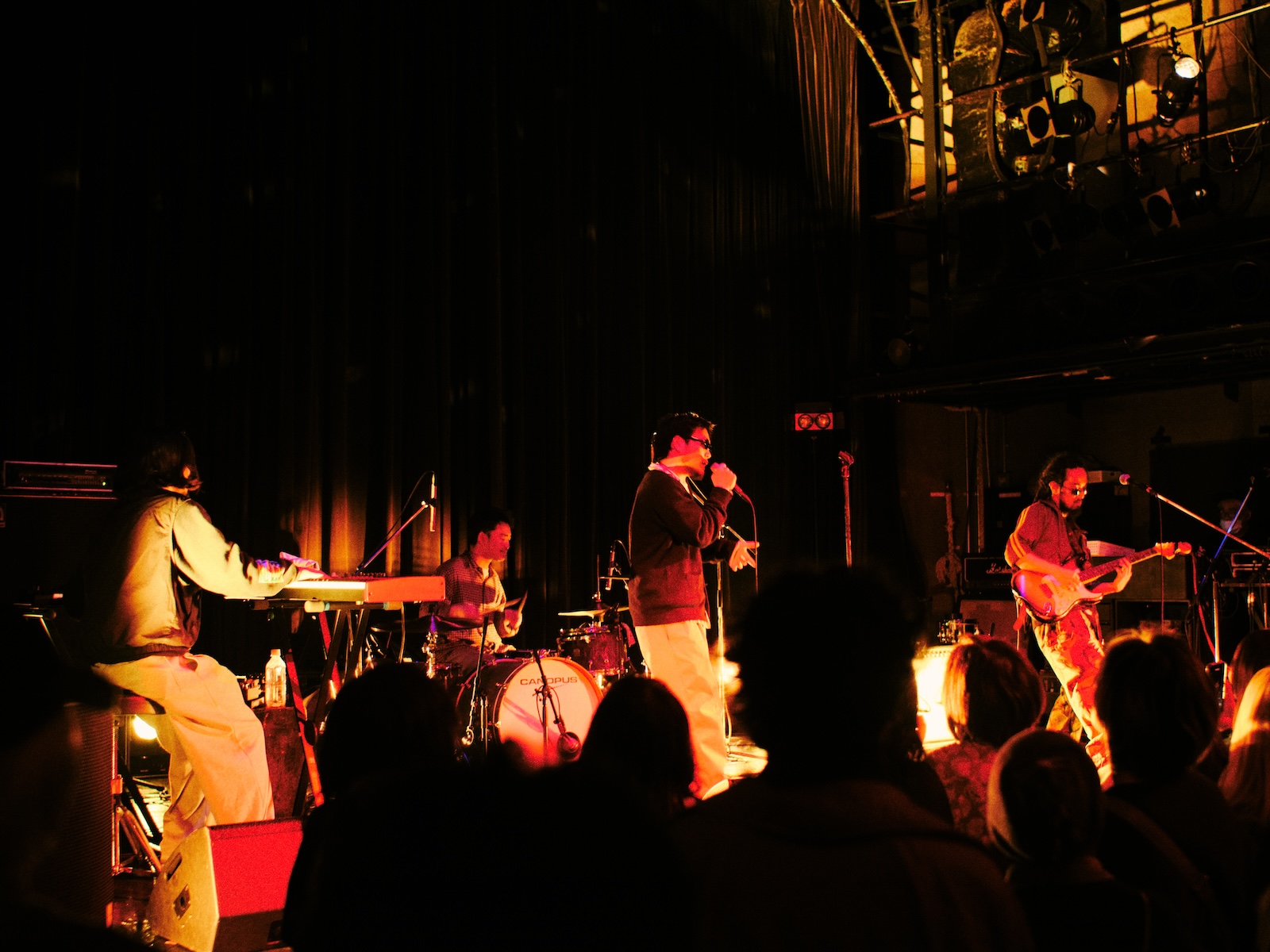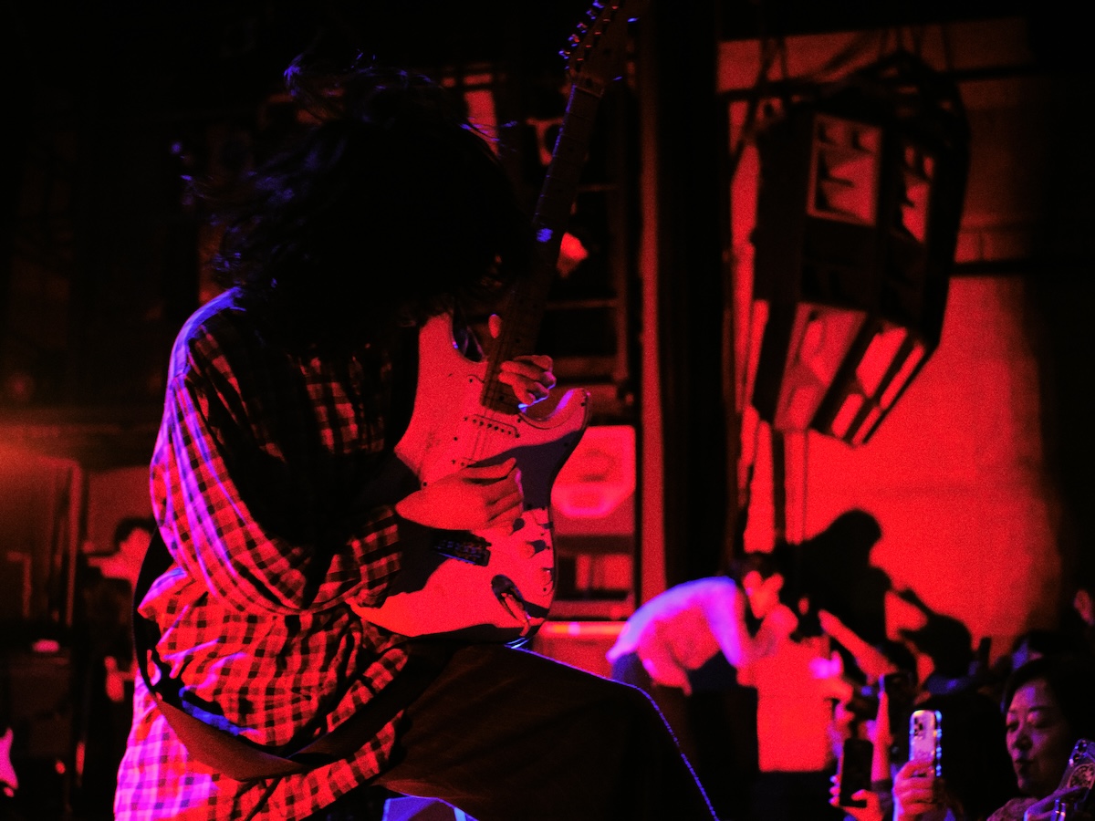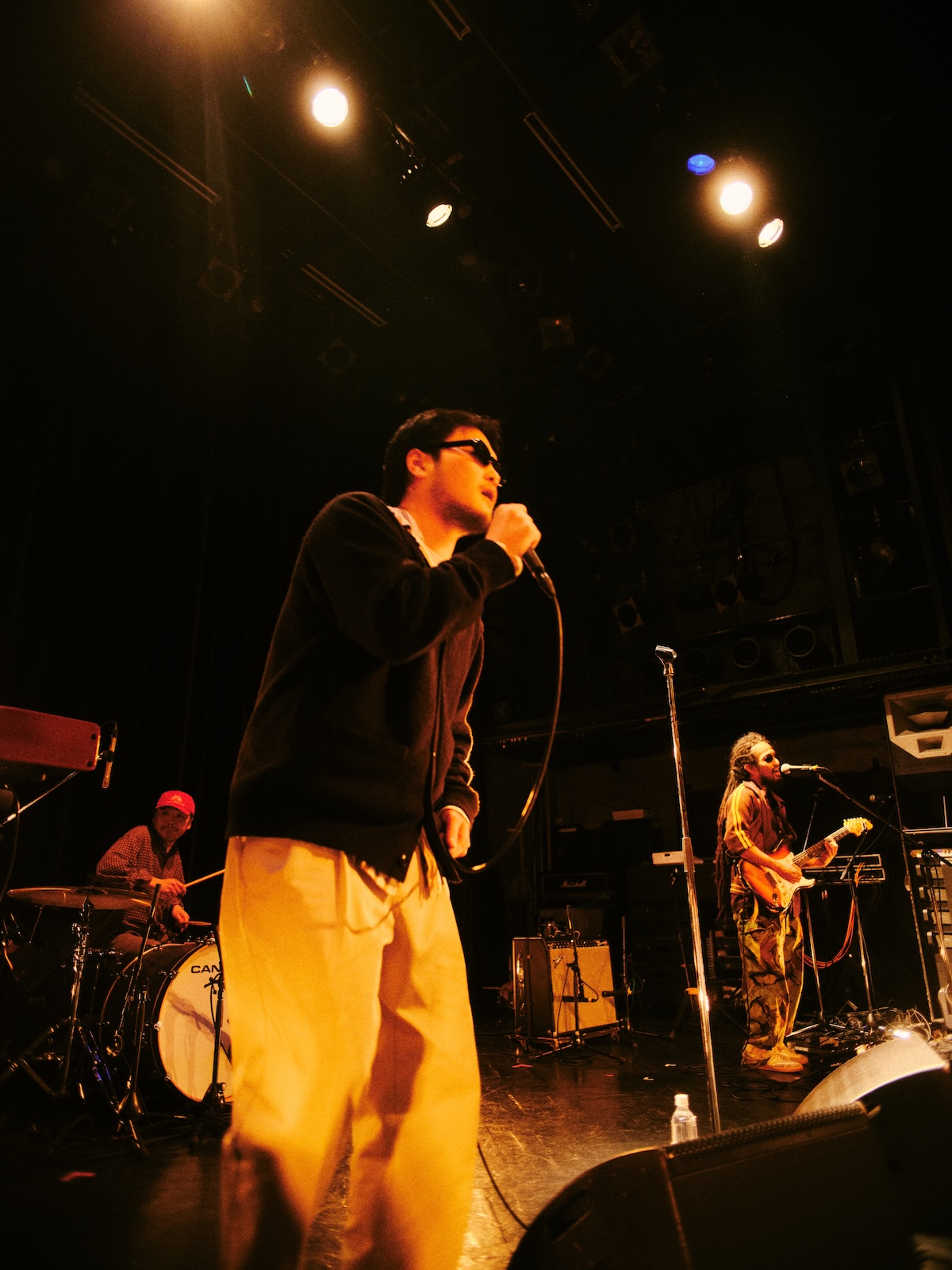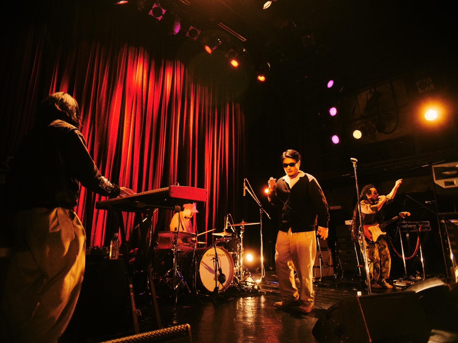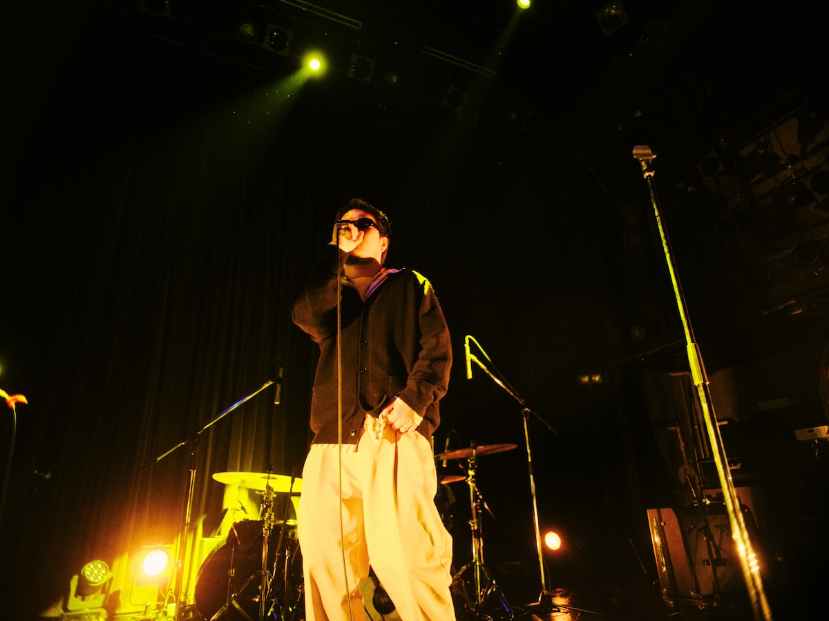 一組目はS.A.R.。現在、体調不良によりベースのEnoがライブ出演を休止しているため、この日はベースレスの4人編成でのステージに。Taro(Key.)がシンセを用いてベースラインをカバーしながら、may_chang(Dr.)とともに紡ぐグルーヴは、意外なほどスムーズで違和感がない。santa(Vo.)の色気あるボーカルに、Imu Samu(Gt., MC)の魅惑的なギターとラップが重なり、会場の空気を瞬く間に掌握していく様からは、ライブ巧者ぶりが存分にうかがえた。