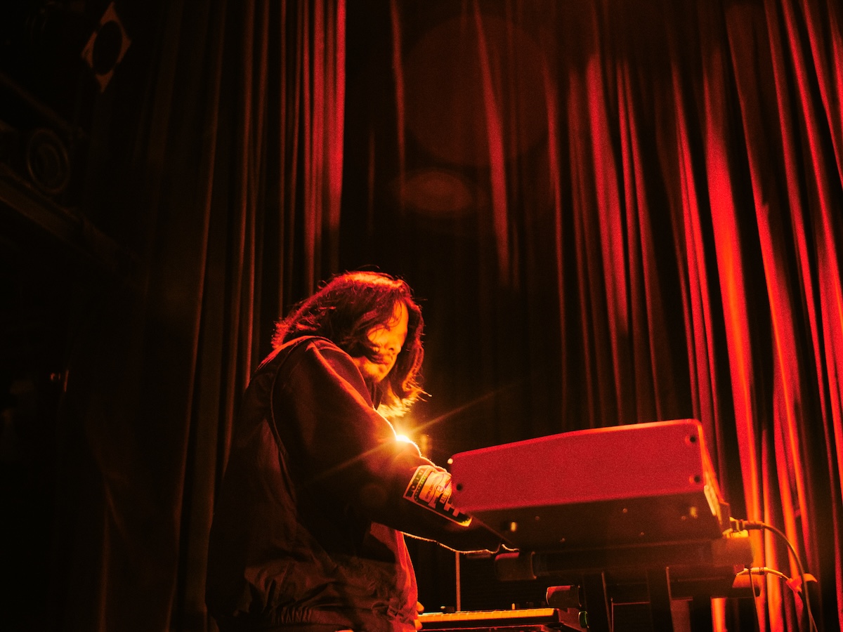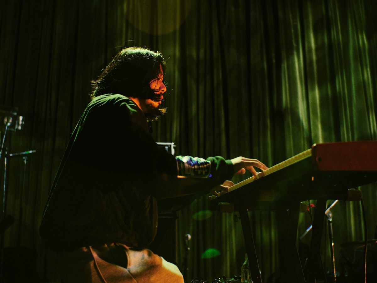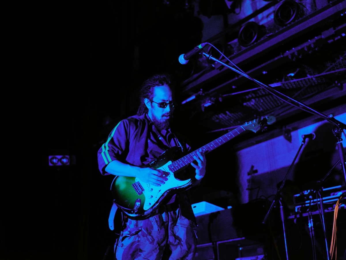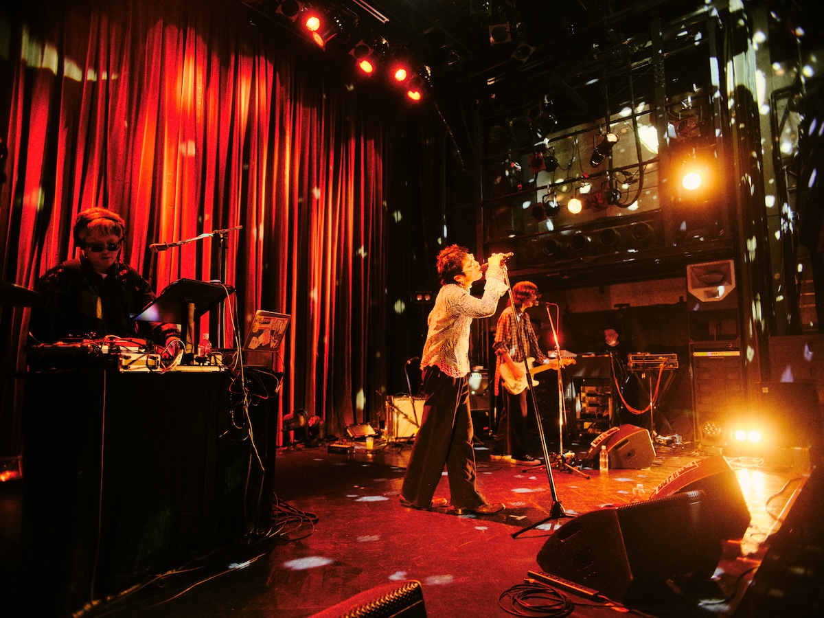 この日のトリを飾ったのはHOME。妖艶なファンクナンバー“木目”から、一気に会場の空気を塗り替えていく。ダンスミュージックからブラックミュージック、ロックまで、多様な要素が歪に混ざり合ったその音楽性は、seigetsu(Vo.)、o-png(PC)、shun(Gt.)の3人それぞれの個性が、そのまま楽曲に表出しているかのようだ。